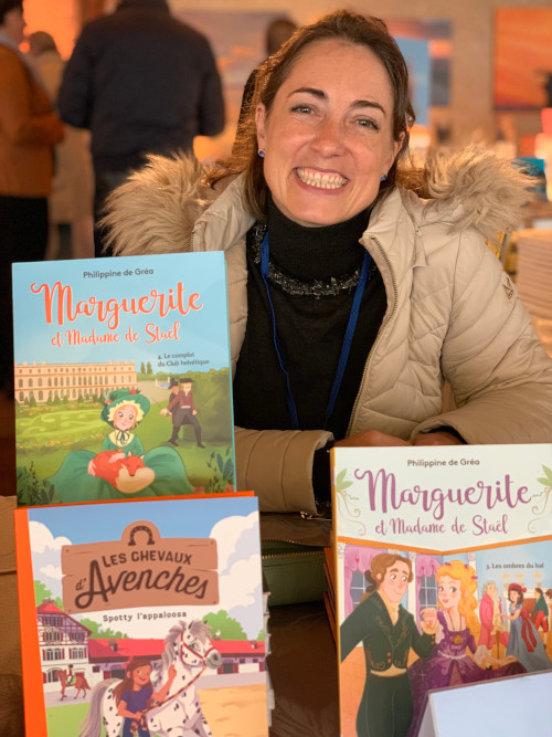 PrésentationBonjour ! Quel plaisir de penser que nous allons réaliser des missions ensemble ! Déjà, rien que le terme de « mission » fait souffler un vent d’aventure sur notre histoire, j’espère que vous êtes aussi impatients que moi ! Mais pour former une bonne équipe, ingrédient indispensable à la réussite d’une mission, il faut bien se connaître ! Je m’appelle donc Philippine, ce que vous savez probablement déjà. Ce que vous ne savez peut-être pas, c’est que tous mes livres sont inspirés par des faits de ma vie. Aussi, je vous propose un jeu : serez-vous capable de relier mes passions avec les livres correspondants que j’ai publiés chez Auzou Suisse ? Voici les choix : Pyromane, Lemania Paradise, Panique au Swiss Vapeur Parc, Les Chevaux d’Avenches, Collision au CERN, Marguerite et Madame de Staël. 1. Mon nom signifie « Celle qui aime les chevaux » 2. J’ai été vice-championne de Suisse de judo quand j’étais ado, et mon club se trouvait juste à côté du CERN, à Meyrin (GE) 3. La technologie me fascine, les mystères aussi, et j’ai longtemps fait de la voile sur le Léman 4. Ma famille possédait un château (il y a très très longtemps !) et je suis fan d’Histoire 5. Mes enfants adorent le Swiss Vapeur Parc, donc j’y vais très souvent ! 6. L’année dernière, de nombreux feux se sont déclarés dans le canton de Vaud. Je me suis demandé s’ils n’étaient pas intentionnels… Avez-vous réussi ? Bravo si oui, vous pourrez m’envoyer vos réponses avec ou avant votre première mission. Si non, je vous donnerai les réponses lors de notre premier échange. Et vous ? Pour préparer notre première mission, j’aimerais aussi vous connaître ! Pouvez-vous m’écrire un court paragraphe en me disant votre nom, votre âge, et la qualité que vous aimeriez avoir si vous pouviez choisir n’importe quel don ou talent au monde. D’ailleurs, ce talent n’a pas besoin d’être réel ! Vous pouvez aussi l’inventer. Par exemple, moi, j’ai toujours rêvé de pouvoir transporter des objets par la force de ma pensée. J’aimerais aussi savoir si vous avez déjà fait de la réalité virtuelle, et ce que vous avez aimé ou pas. Si vous n’en avez jamais fait, vous pouvez me dire si vous pensez que vous aimeriez ou pas, et pour quelles raisons. ![]() ![]() Sinon, si vous vous demandez si je saurai faire équipe avec des enfants, sachez que j’en ai quatre moi-même ! Ils ont 9, 12, 15 et 17 ans, et ils sont formidables. J’ai aussi un chien, un cheval et des poissons rouges, et j’avais un chat mais il est mort cet été. Il était très vieux mais c’était très triste quand même. Bref, il y a beaucoup d’animation chez moi ! Je vous mets quelques photos, au cas où vous êtes un peu curieux, mais sinon vous pouvez encore en savoir plus sur moi en visionnant la courte vidéo ci-dessous. Depuis, beaucoup de nouveaux livres sont venus enrichir ma bibliographie ! ![]() ![]() ![]() ![]() ![]() À bientôt ! Philippine |